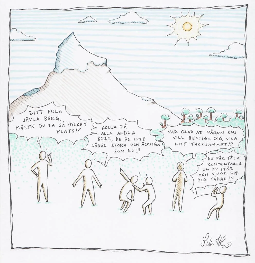 Serietecknaren Silke Varga Laurén observerar ett fult jävla berg.